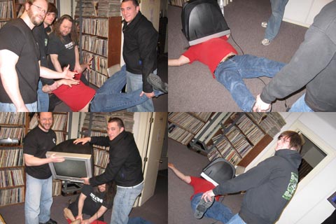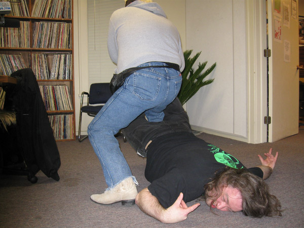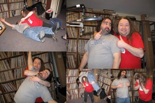Recap by Fire Eater Wizard; Kim, from the band Infrared Radiation Orchestra, was there for about the first three hours. He played long guitar solos, he rocks, www.myspace.com/infraredradiationorchrestra is his band's website. This was a big few days for birthdays on MO... The first three hours of the program, December 4th, were Lance's Josh's and, EVD's, a very Happy Birthday Lance, Josh, and, EVD! And, Rick's birthday would be on the upcoming Tuesday, December 8th, a very Happy Birthday to Rick! Jeffie told Josh that he had a birthday present for him. Josh didn't really seem to want it, whatever it might be. Jeffie told him that he had been going to get Thor for him, because he knew how much Josh liked Vikings, but he couldn't find Thor anywhere. So he had the pills that used to turn Jeffie into Thor, and, though they were old, and he wasn't sure they would still work, he was now going to take one of them. He did. And the pill turned him into The Ultimate Jeffie, a powerful wrestler. The Ultimate Jeffie spoke in a loud, bellowing voice, and always informed us that he had come across the mountains of madness, fought the ostriches of the plains, conquered the 8th and 9th dimensions, and the universe and multiverses. He told Josh that he was going to train him to be a great wrestler, and that they would be the biggest, greatest tag team of all time. The Ultimate Jeffie snorted a lot. Very deep snorts. After about 3 minutes, he passed out, and when he came to, he was Jeffie again, who didn't remember anything of what had just transpired, but that his nasal passages hurt... A lot ... They urged him to take another pill. He wasn't sure he wanted to, since he didn't feel so well, but he did. The Ultimate Jeffie was back talking about the mountains of madness and the ostriches. He claimed he could rip through any napkin, and eat any napkin, he started doing that. About 3 minutes had gone by, and he passed out. When Jeffie came to, his nasal passages felt even worse, and he asked why there was a napkin in his mouth. Later he took another pill, reluctantly. The Ultimate Jeffie told Josh that they would fight Rick, whom he had now named The Minotaur. The Ultimate Jeffie head butted and chopped Rick, then knocked him out with the splash. he then told Josh to cover Rick, put Josh on top of Rick and counted to three. Wow! Isn't that amazing?! I never would have believed that could happen! I didn't know Jeffie could count to three! Joe decided to appoint himself the referee, and told them that Jeffie had never tagged Josh, that Josh had done nothing in the match, and that, therefore, had not won. they argued about this. Jeffie passed out again. Joe told Josh to cover him. Josh did, Joe counted three (I didn't know old senile people could count to three either!), and Josh was excited to have won twice. Jeffie had no memory of any of this. Rick didn't know what had happened either. Joe told Rick that he would have to kill Jeffie and Josh, that Jeffie had knocked him out with the splash, and then cheated to give Josh the win. Rick said he was going to watch the video, and then kill them next week. Jeffie complained that his nasal passages were nearly non working by this point, and that his hands hurt. The Ultimate Jeffie came back started talking about all those things he talks about, and began sounding like Hulk Hogan (whom he called a great man), saying "brother!" a lot, talking about his followers, all the little Jeffieites, and calling Josh The Ultimate Joshie. Rick informed Jeffie and Josh that he was going to kill them next week. Josh said that he knew he was going to die, but that he had fun with The Ultimate Jeffie anyways. So I guess Josh liked his birthday present. He did get two wins, sort of. The Ultimate Jeffie was still bellowing and snorting when the program ended. If Rick's a Minotaur, The Ultimate Jeffie should be the bull, he bellows and snorts like one.