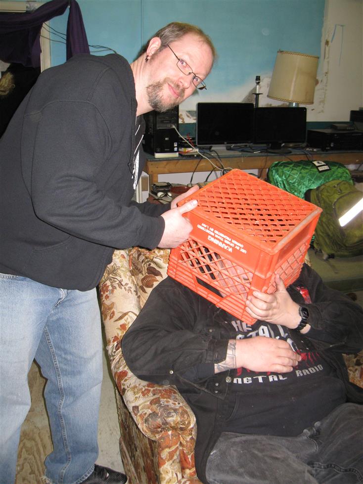 A milk crate was used on my knees next, which is just flat-out adding insult to injury, because my damned knees don't need help to get any worse than they already are...
