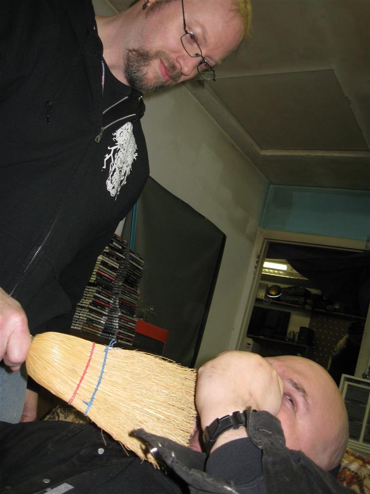 I was subjected to further indignities when Joe took a whisk broom and decided to brush my teeth with it. Apparently Jeffie had been spotted at one juncture using that very same whisk broom to clean out his dingleberries...