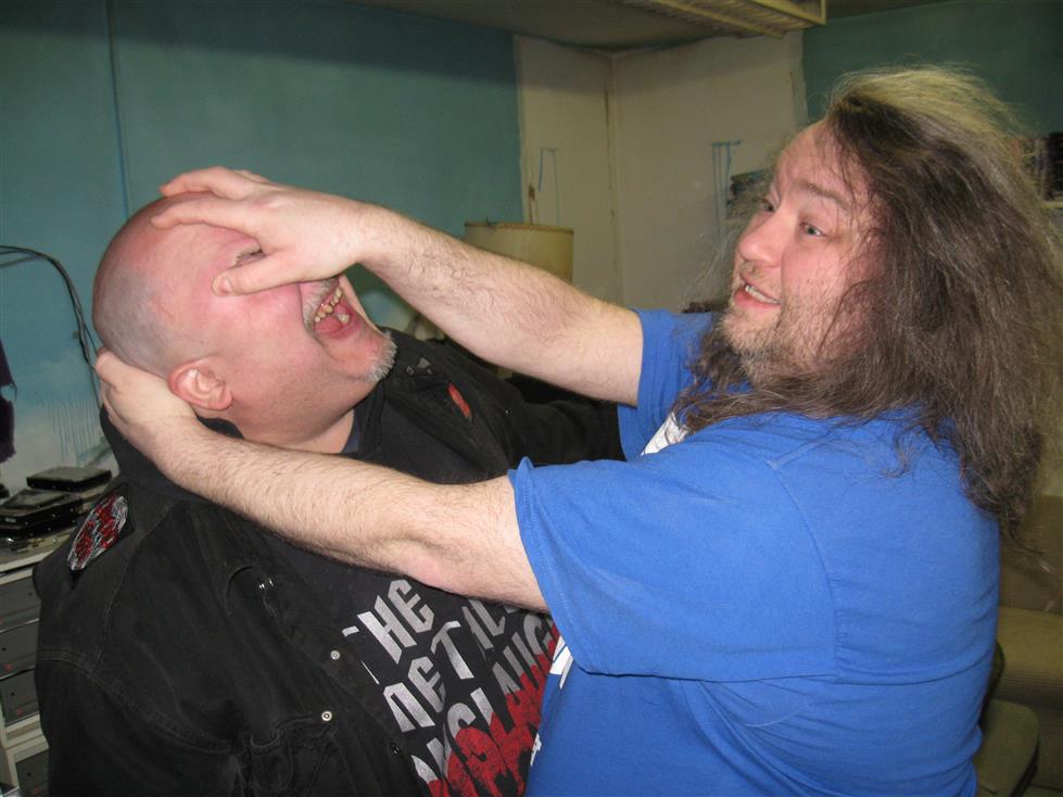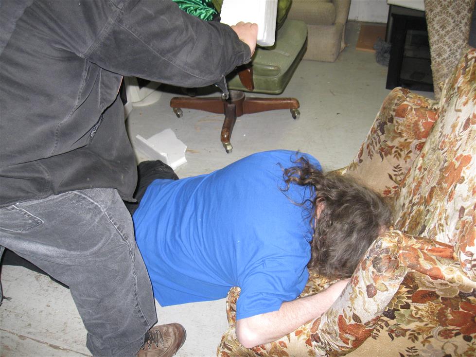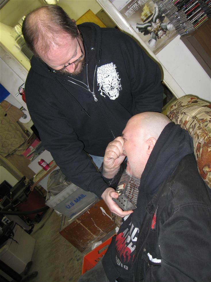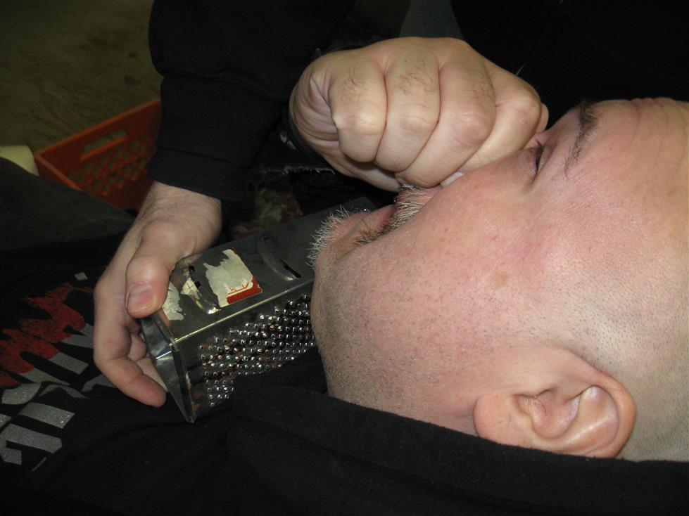 Next up was the very same cheese grater that Jeffie had used to shred my forehead just a couple weeks earlier. Joe decided to use it to shred my throat, pretty much eradicating my Adam's Apple. Gasping and choking, I soon lost consciousness and may have perished completely if Josh hadn't attempted to give me mouth to mouth. Notice i say "attempted", because I must have sensed something terrible about to happen (again...), and regained my consciousness just in time to see Josh lowering his head down to mine.
