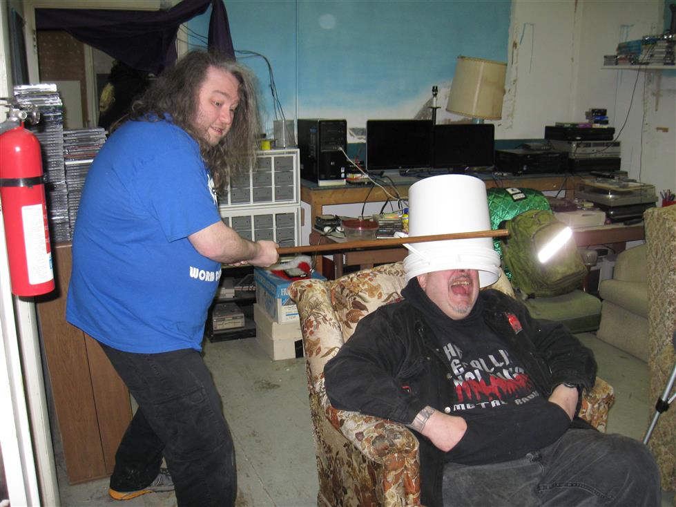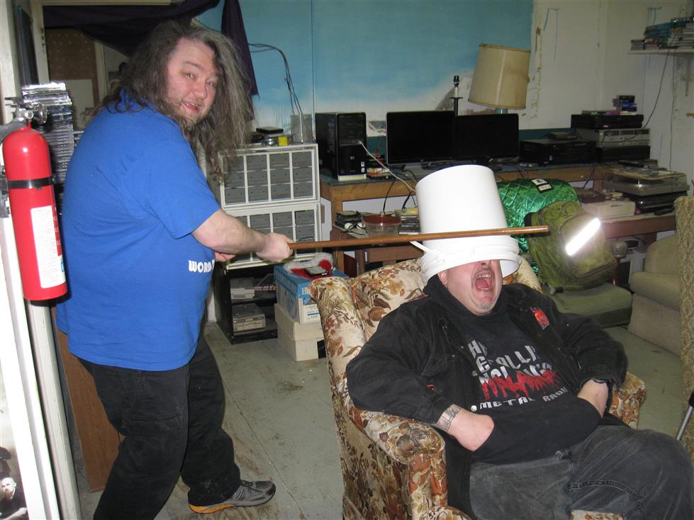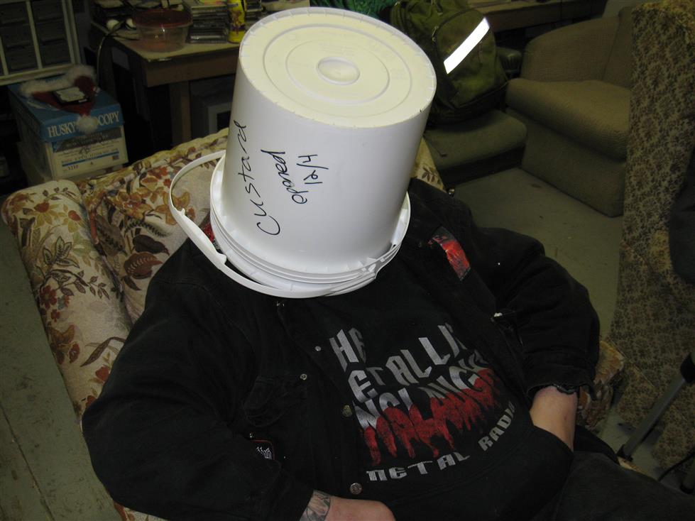Jeffie put the plastic bucket over my head, and then decided to try knocking the bucket off using a hammer. My nose, which had been healing quite nicely up to this point, endured further trauma.