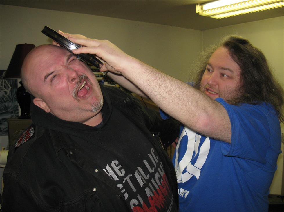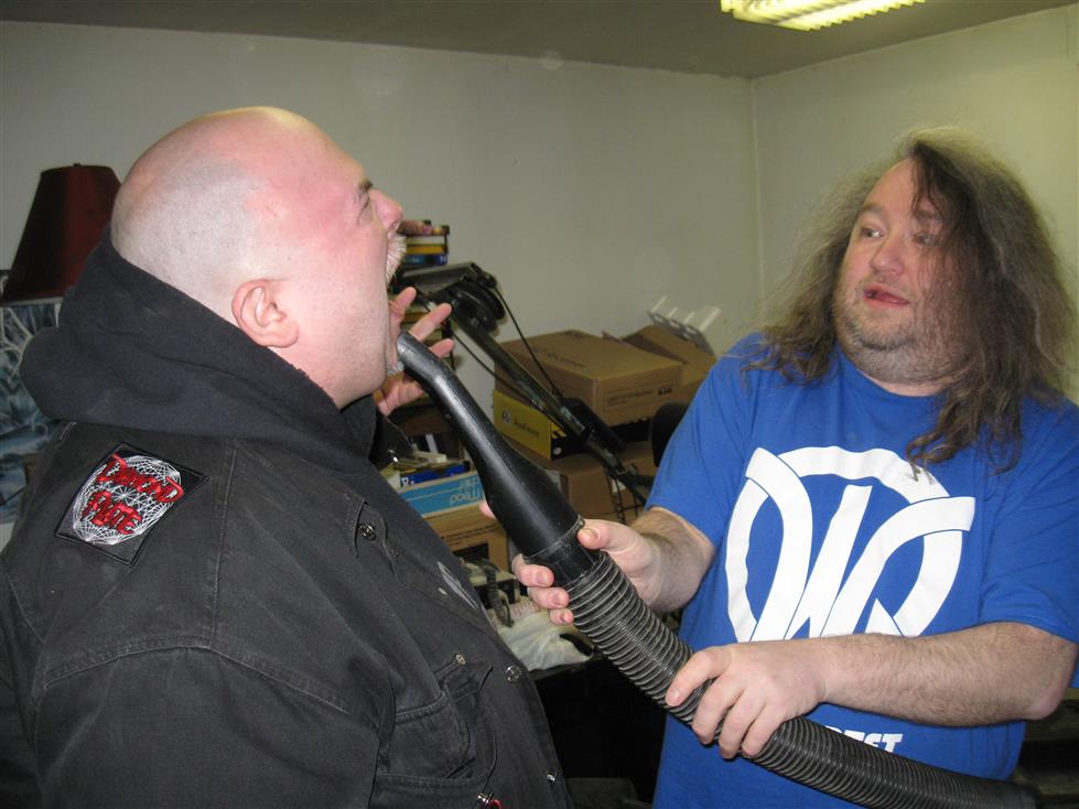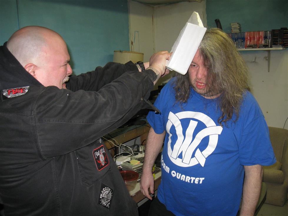 Really, and I'm speaking from the heart here, you haven't lived until you've beaten the snot out of someone with huge pieces of styrofoam. I mean, yeah, it makes a HELL of a mess, but it's so much freakin' fun! Yep, Jeffie and I pummeled the hell out of each other for a good length of time. Other implements of destruction were also brought in, because these moments pretty much turn into a hardcore wrestling match. This particular bout came to a close when Jeffie turned on a Shop Vac and took the hose to my face...