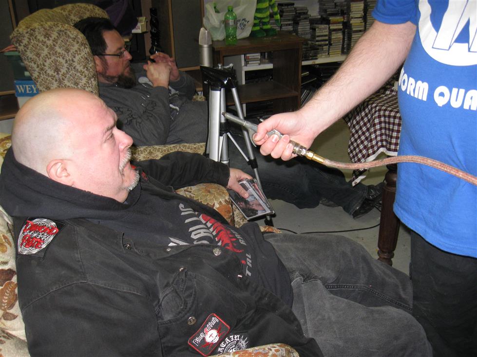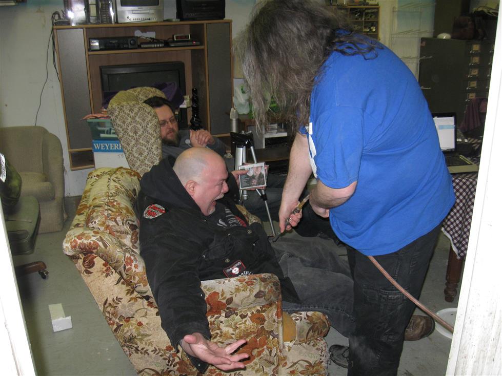 And, last but not least, for some bizarre reason, Joe thought I had sprung a leak, prompting Jeffie to turn on Azkath's air compressor to reinflate me through my belly button. You can only imagine the carnage from there...just think of the restaurant scene from Monty Python's "The Meaning Of Life", but this time with rice and sausage chunks splattering the entire room.
